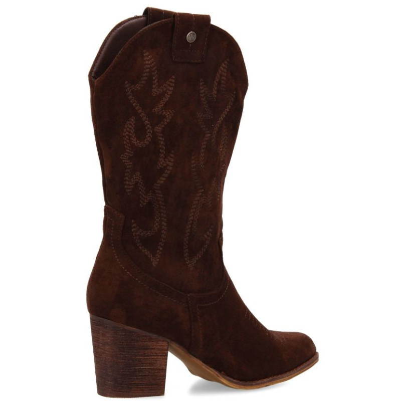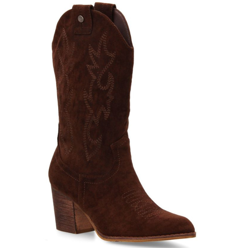 BOTIN CAMPERO EN ANTE CON BORDADO EN CAÑA Y EMPEINE. TACON DE 7CM Y CIERRE DE CREMALLERA INTERIOR.