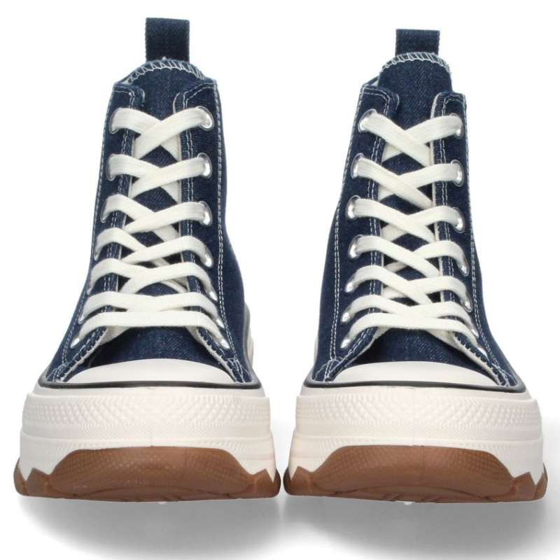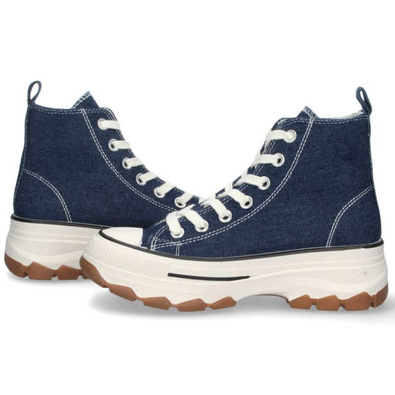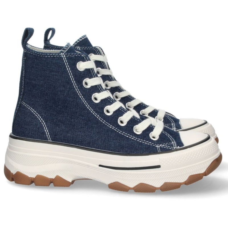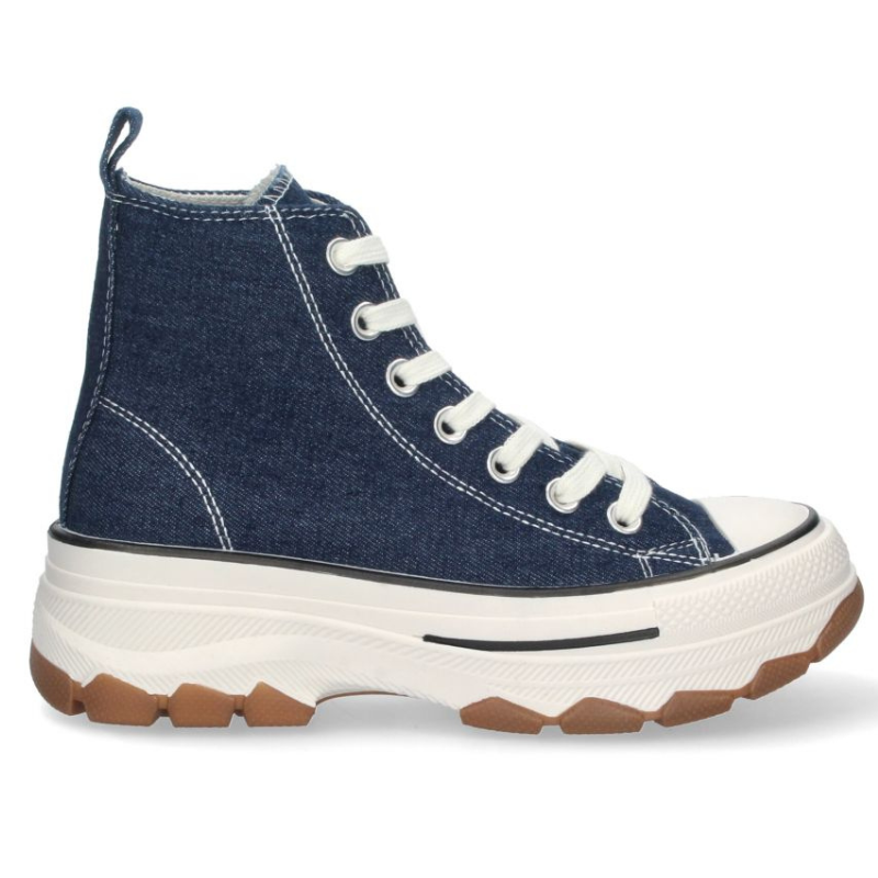ZAPATILLA BOTA EN LONA CON CORDONES. TALON DE 4,5CM Y PLATAFORMA DELANTERA DE 3,5CM.