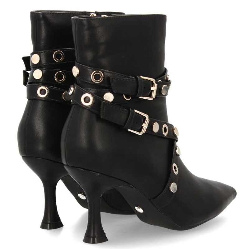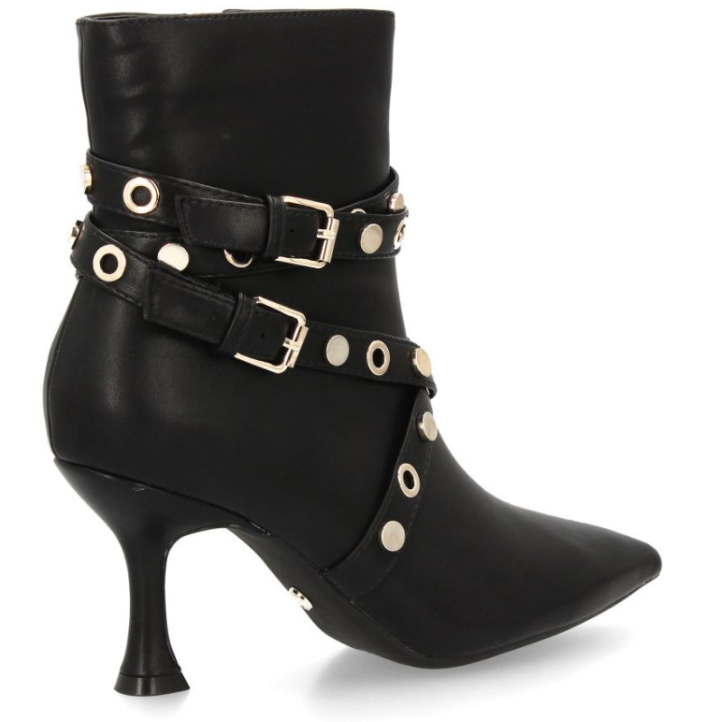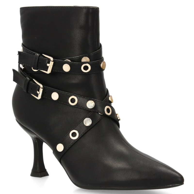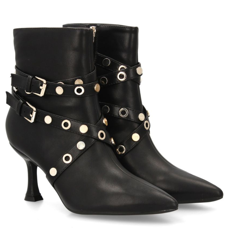 BOTIN EN PIEL DE TACON FINO DE 6CM CON DISEÑO DE TIRAS CRUZADAS. ACABADO EN PUNTA Y PLATAFORMA DELANTERA DE 1CM.