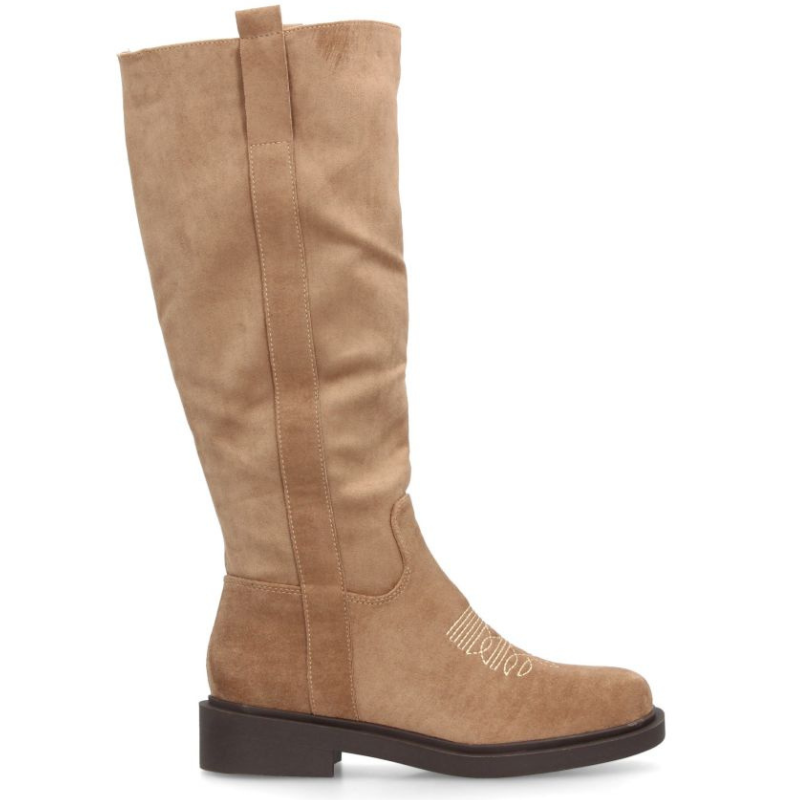 BOTA ALTA ESTILO COWBOY CON BORDADO FRONTAL Y PANELES LATERALES ELASTICOS. TACON DE 4CM Y PLATAFORMA DELANTERA DE 2CM.