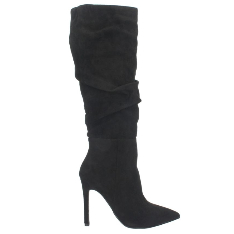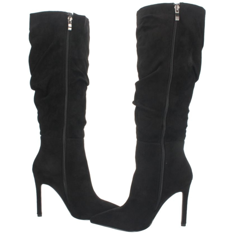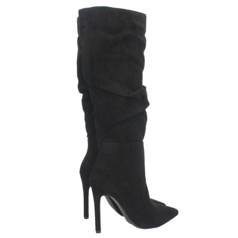 BOTA DE CAÑA ALTA ARRUGADA CON TACON FINO DE 10,5CM Y CIERRE DE CREMALLERA INTERNO.