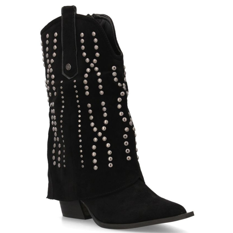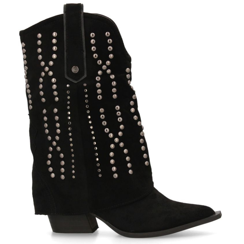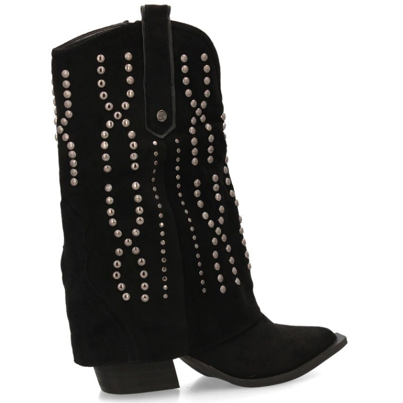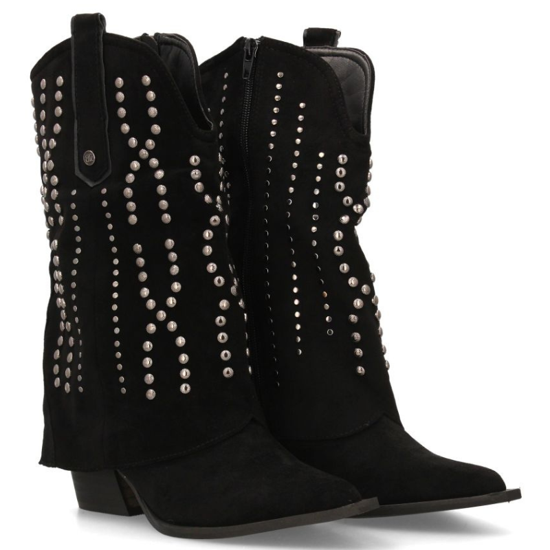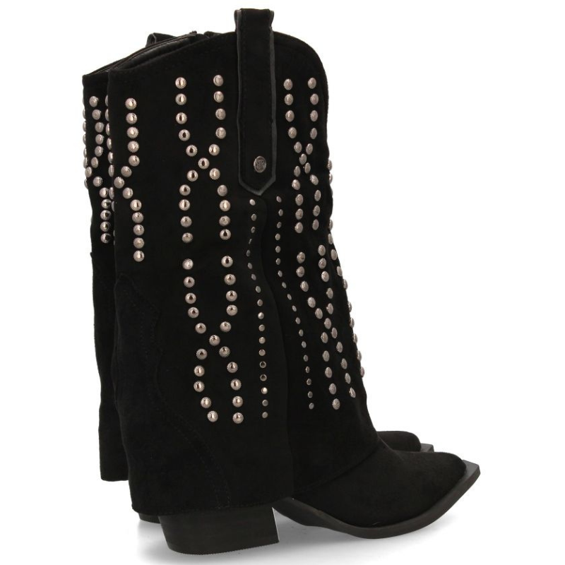 BOTIN TIPO COWBOY DE MEDIA CAÑA EN ANTE CON TACHUELAS Y CUBREBOTA. PUNTA FINA Y TACON CUBANO DE 4,5CM.