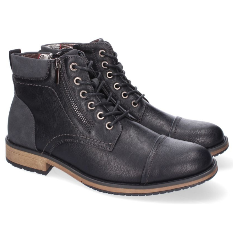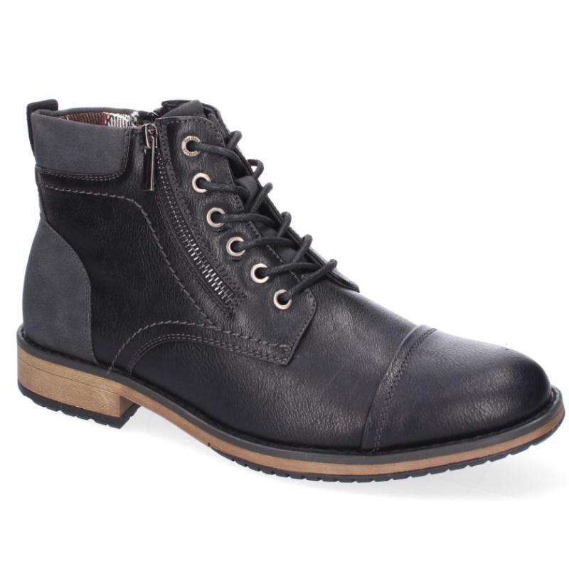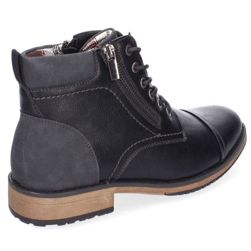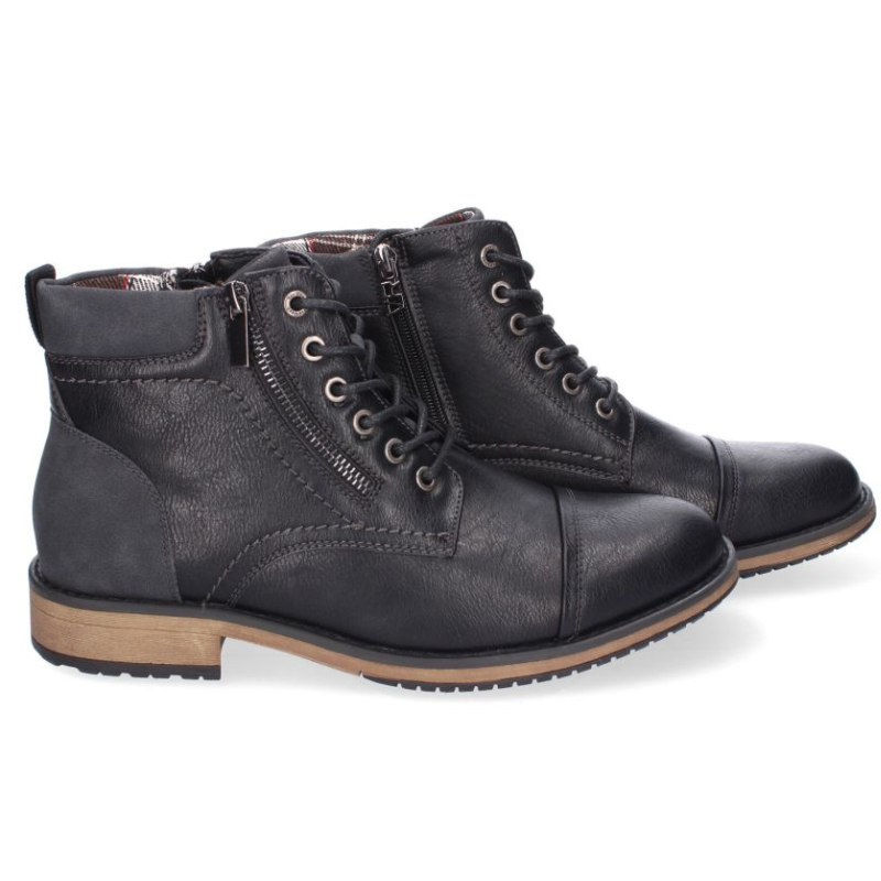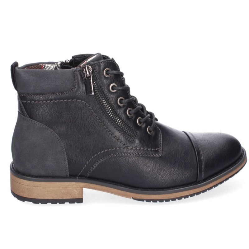 BOTIN CON ACABADO EN PUNTA REDONDA Y PIEL CON ADORNO DE CREMALLERA LATERAL. LLEVA CIERRE DE CORDONES Y CREMALLERA. TACION DE 3CM.