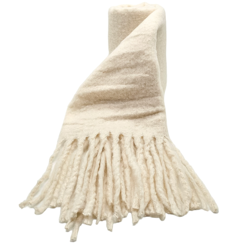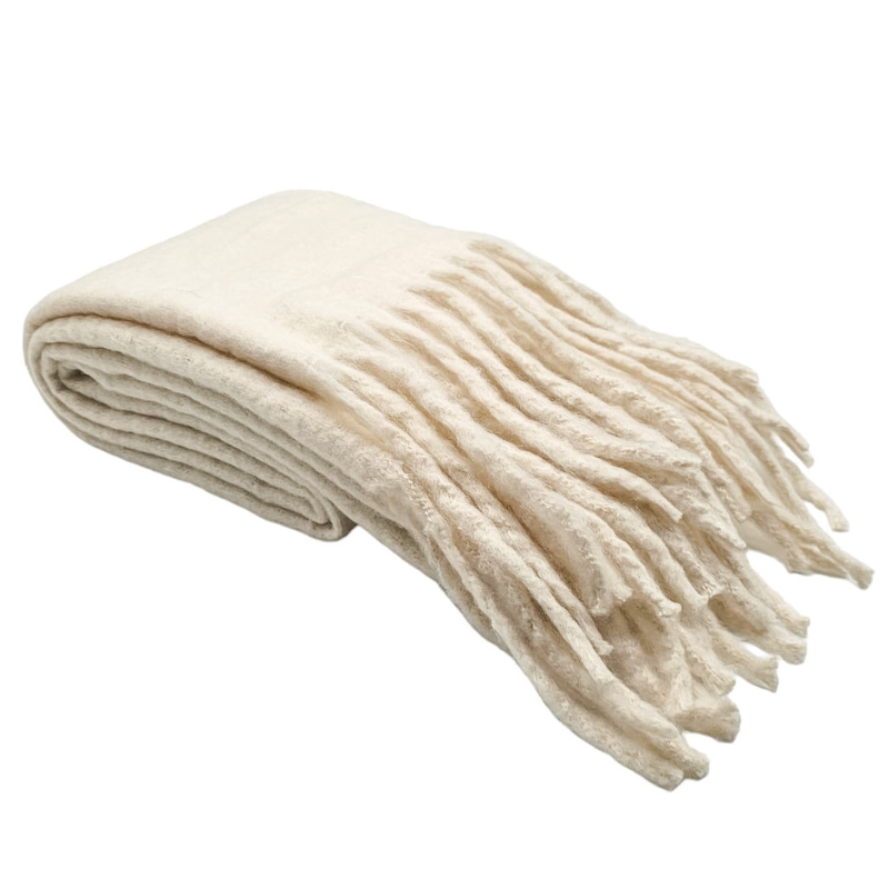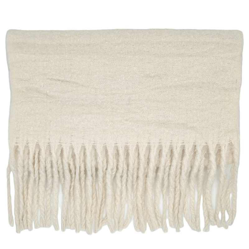 BUFANDA LISA CON FLECOS. ¡SUPER SUAVE!. COLOR BLANCO.